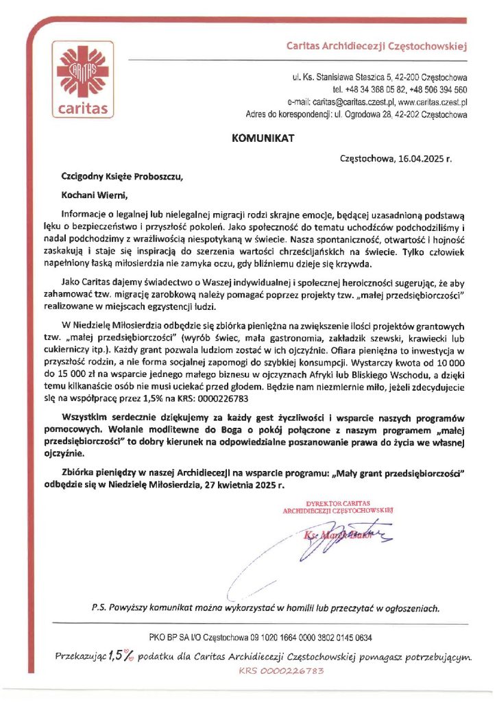 14. Bóg zapłać za wszystkie społecznie wykonane prace na rzecz naszej wspólnoty Parafialnej i za składane ofiary.