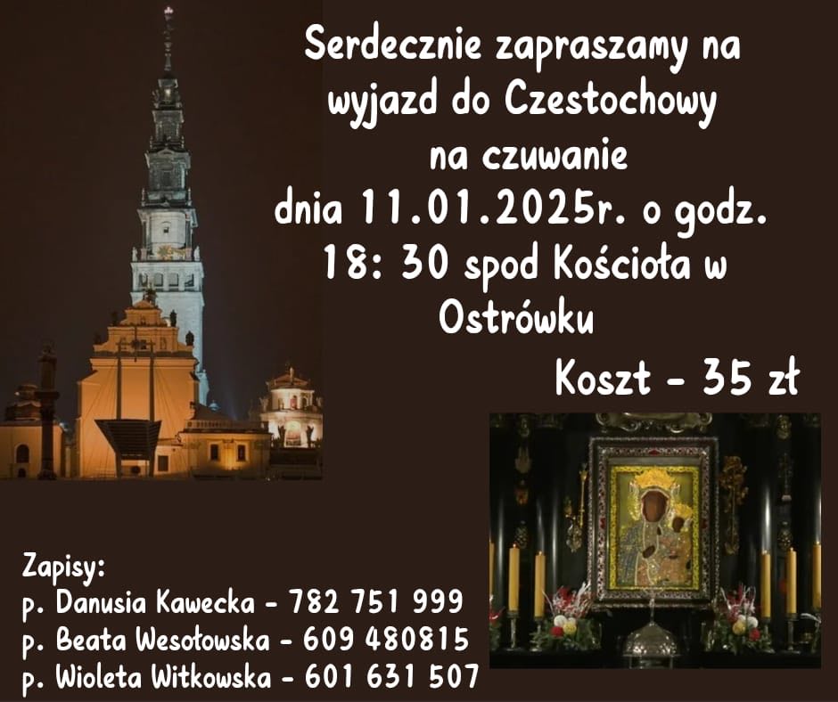 9. Można się jeszcze zapisywać na wyjazd na czuwanie na Jasną Górę w przyszłą niedzielę 11 lutego.